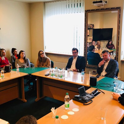 Na koniec wizyty studenci zostali zaproszeni na spotkanie z Prezesem grupy Mokate drem Adamem Mokryszem. Prezes opowiedział studentom o rodzinnym biznesie, globalizacji firmy, ekspansji firmy na rynki międzynarodowe, także o swoich doświadczeniach w negocjacjach biznesowych w różnych kręgach kulturowych.