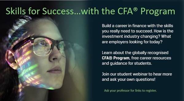W dniach 21-23 listopada br. odbywać się będzie webinar: Skills for Success with the CFA Program. Zapraszamy do udziału!