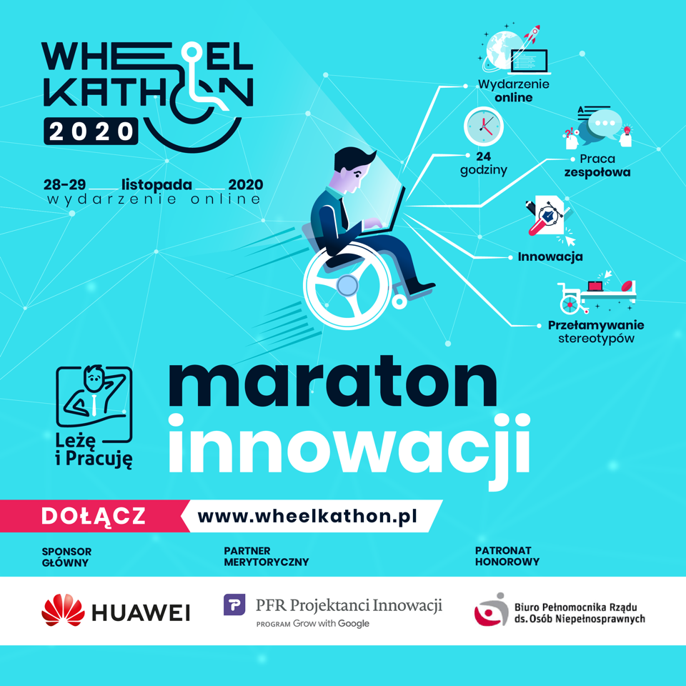 Wheelkathon 2020, czyli maraton innowacji organizowany jest przez z Leżę i Pracuję - pierwszą agencję marketingową, która powstała po to, by zmieniać rynek pracy dla osób z niepełnosprawnościami ruchowymi.