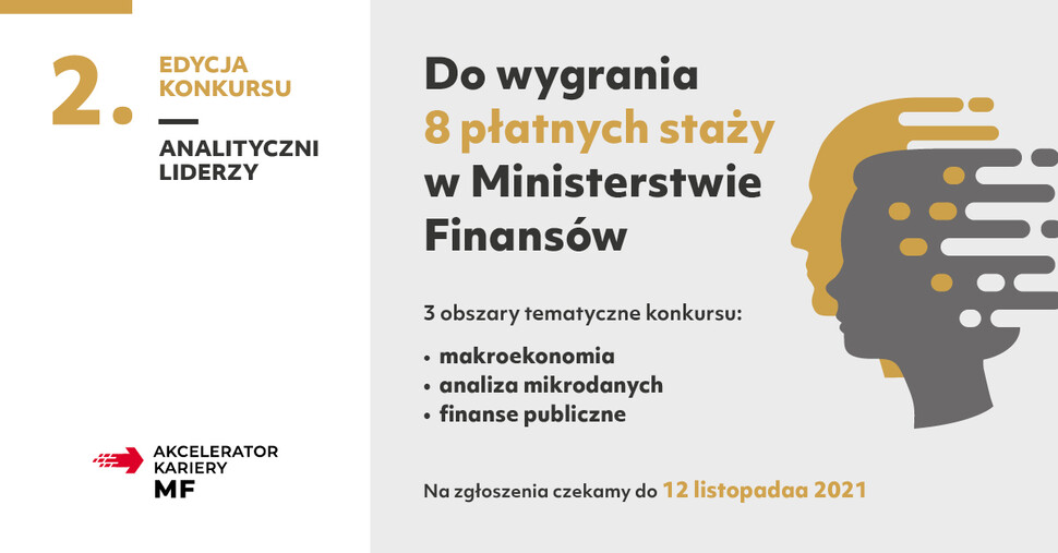 Sprawdź swoją wiedzę i umiejętności. Rozwiąż jedno z zadań konkursowych, zostań Analitycznym Liderem i zaangażuj się w współtworzenie polityki makroekonomicznej podczas płatnego stażu w MF.
