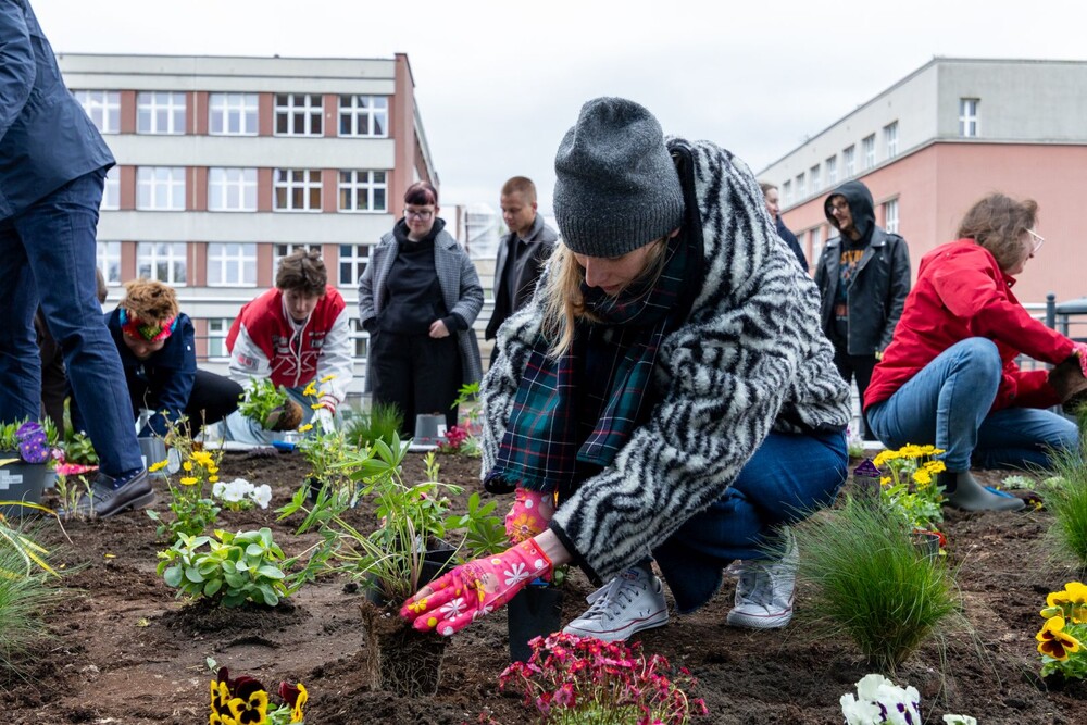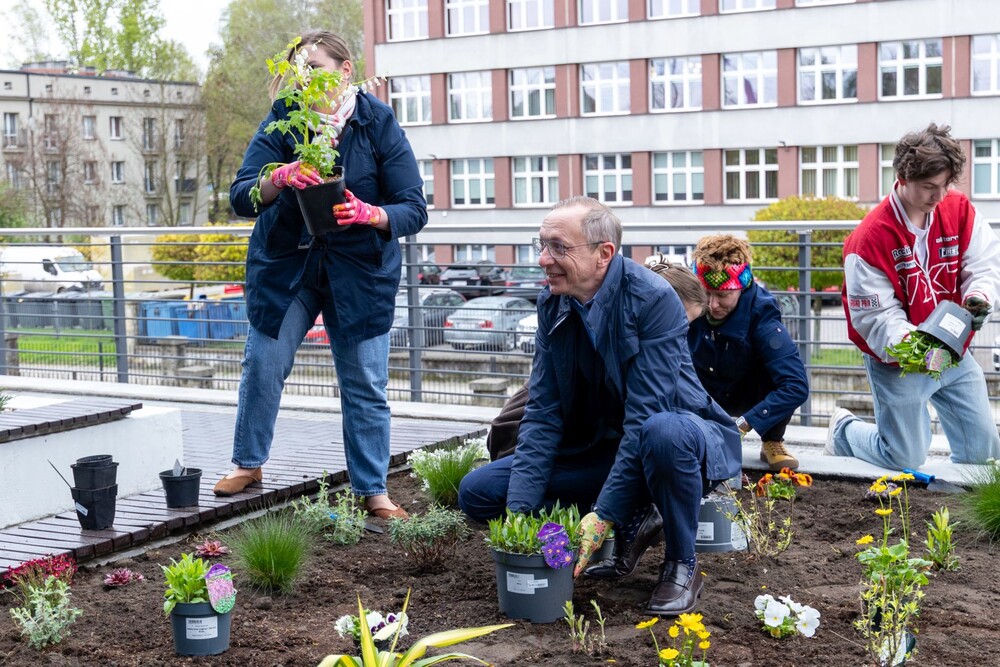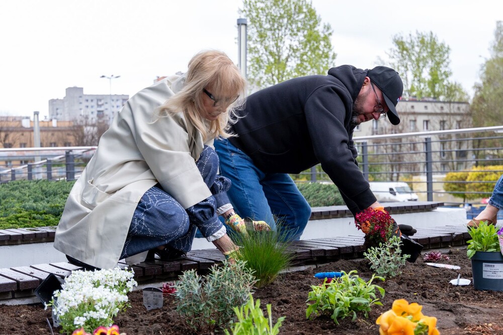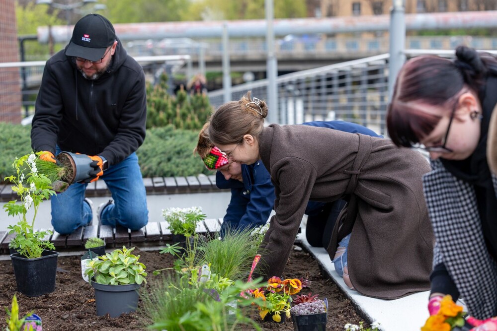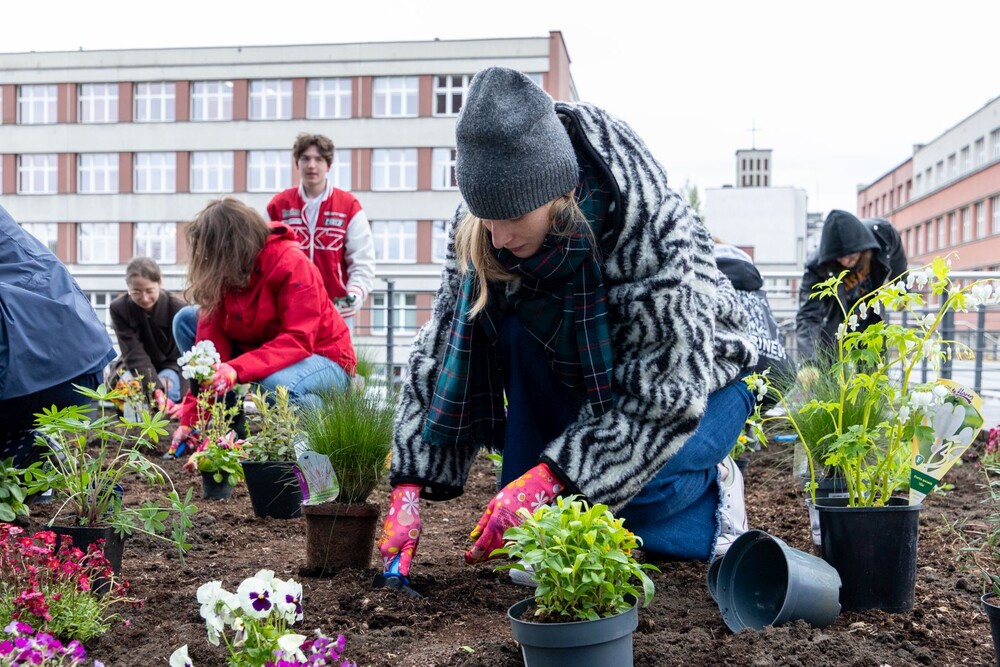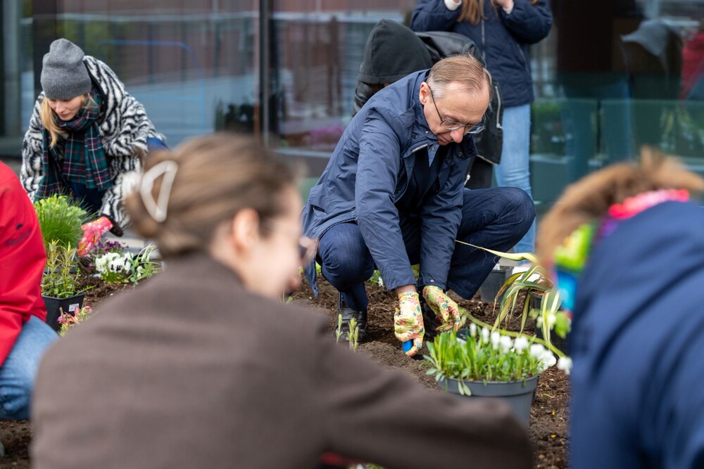 Wydarzenie miało nie tylko symboliczny charakter, ale przede wszystkim bardzo konkretny wpływ na najbliższe otoczenie kampusu. Uczestnicy aktywnie zaangażowali się w sadzenie roślin i kwiatów, dzięki czemu przestrzeń wokół Uczelni zyskała nowe, kolorowe punkty przyjazne owadom, a jednocześnie estetyczne i przyjemne miejsce na spędzenie czasu podczas przerw między zajęciami.