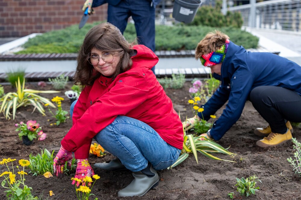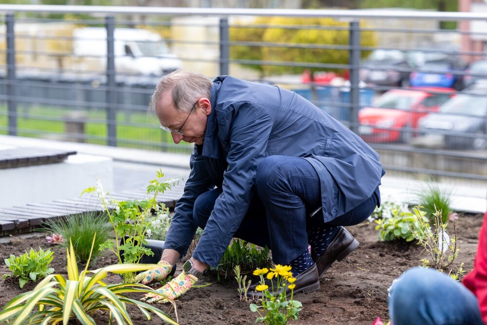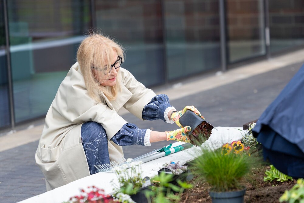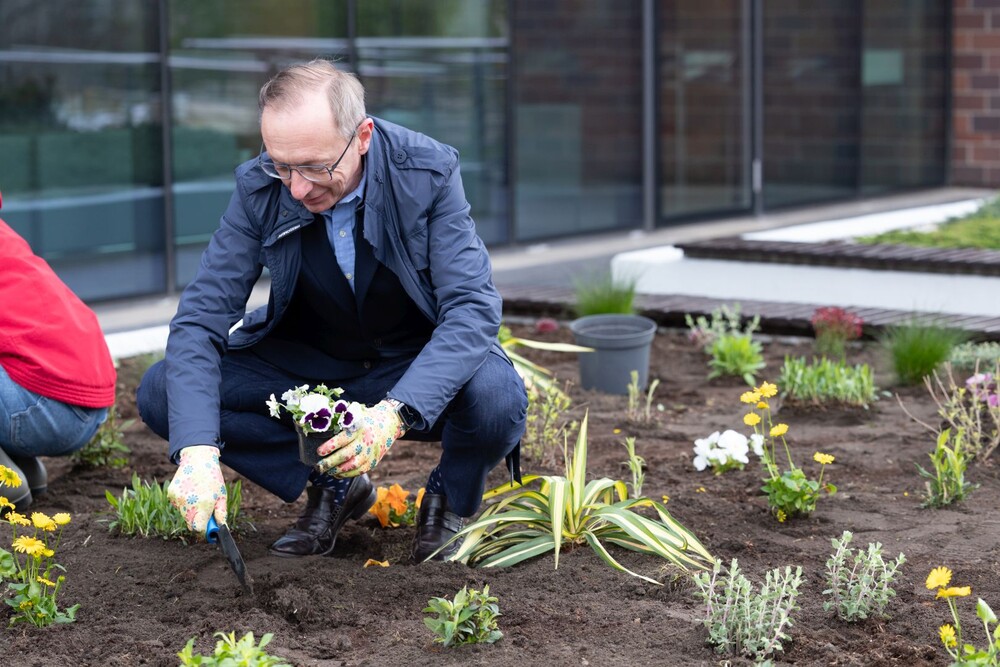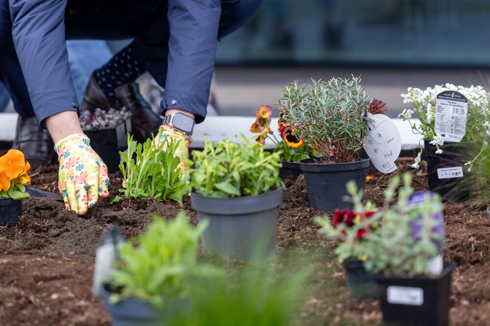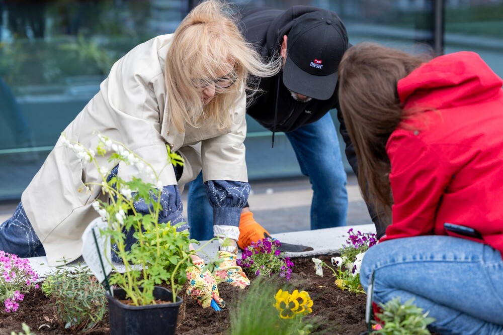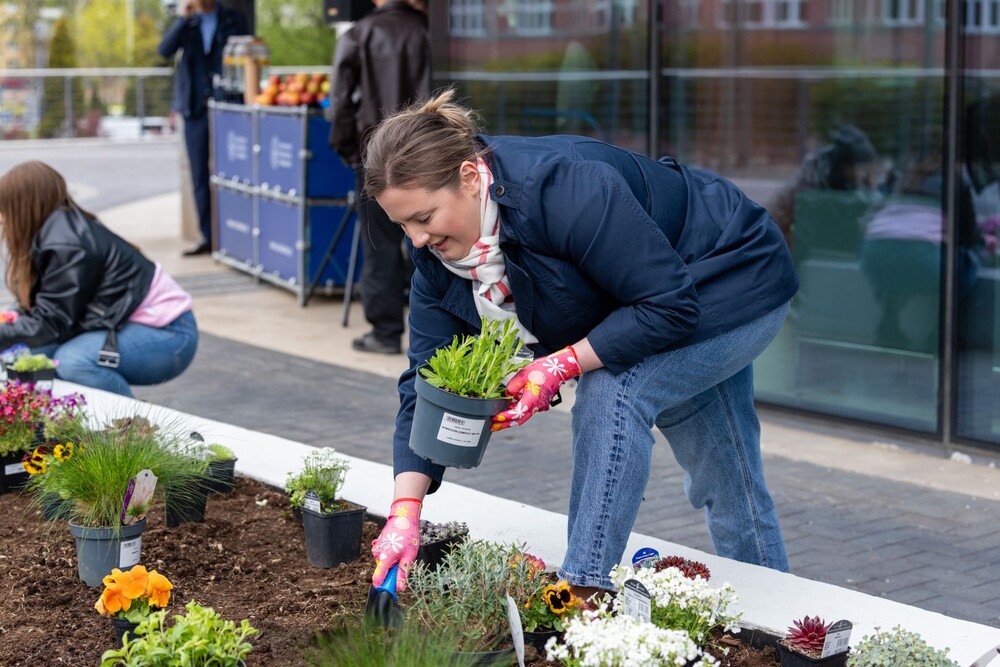 Wydarzenie miało nie tylko symboliczny charakter, ale przede wszystkim bardzo konkretny wpływ na najbliższe otoczenie kampusu. Uczestnicy aktywnie zaangażowali się w sadzenie roślin i kwiatów, dzięki czemu przestrzeń wokół Uczelni zyskała nowe, kolorowe punkty przyjazne owadom, a jednocześnie estetyczne i przyjemne miejsce na spędzenie czasu podczas przerw między zajęciami.