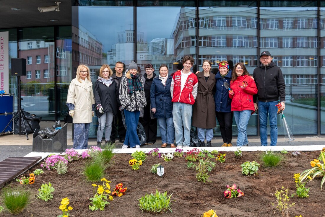 Na Uniwersytecie Ekonomicznym w Katowicach 20 kwietnia 2026 r. Dzień dla Ziemi przybrał bardzo konkretny wymiar. Wspólne sadzenie kwiatów i porządkowanie przestrzeni kampusu zgromadziło studentów oraz pracowników, a w działania aktywnie włączyły się Władze Uczelni: JM Rektor prof. dr hab. inż. Celina M. Olszak, Prorektor ds. Rozwoju i Współpracy z Otoczeniem dr hab. Robert Wolny, prof. UE oraz Kanclerz Paweł Kadłubiak.