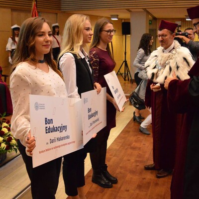 Następnie władze uczelni wręczyły specjalne bony edukacyjne zwalniające z opłaty za pierwszy rok studiów trzem najlepszym studentom zagranicznym z tegorocznego naboru oraz specjalne "Dyplomy Uznania" dyrektorom pięciu szkół średnich, z których pochodzą jedni z najlepszych kandydatów na studia. Są to: Akademicki Zespół Szkół Ogólnokształcących w Chorzowie, Dyrektor: II Liceum Ogólnokształcące z Oddziałami Dwujęzycznymi im. Marii Konopnickiej w Katowicach, I Liceum Ogólnokształcące im. Bolesława Chrobrego w Pszczynie, Zespół Szkół Ponadgimnazjalnych nr 2 w Rudzie Śląskiej, I Liceum Ogólnokształcące im. Jana Smolenia w Bytomiu.