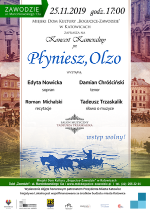 Koncert odbędzie się w poniedziałek, 25 listopada 2019 r. o godz. 17.00 w Miejskim Domu Kultury Bogucice Zawodzie dział Zawodzie, ul. Marcinkowskiego 13a.
