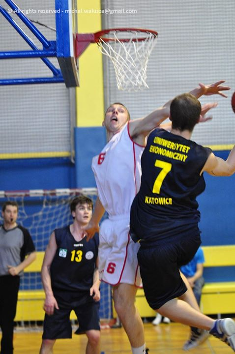 W ubiegłą niedzielę nasi koszykarze w składzie: Artur Donerstag, Jakub Fenrych, Arkadiusz Biel, Patryk Weisbrut – kapitan, Robert Kałuża, Mateusz Pawlik, Mateusz Bobrowski, Dominik Jacaszek, Dawid Kołakowski, Patryk Polczyk, Mateusz Gospodarek i Marek Miądowicz wywalczyli srebrny medal w Akademickich Mistrzostwach Śląska w Koszykówce Mężczyzn. W półfinale, po zaciętym pojedynku, pokonali zespół AWF Katowice.
