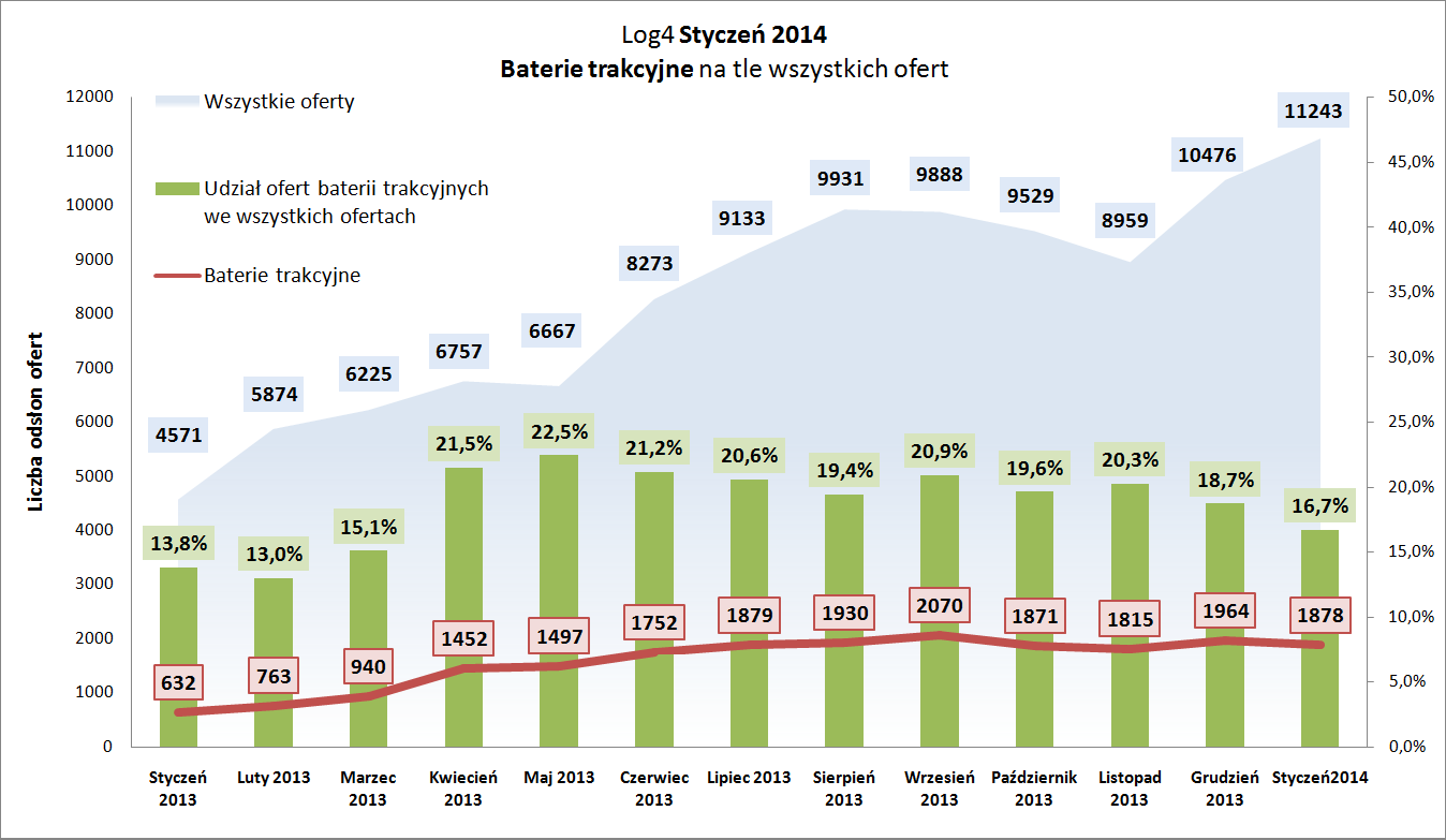 We współpracy z Log4.pl, członkowie NKL Dialog śledzą także bieżące zachowania na rynku ofert portalu. Wraz z wzrostem liczby publikowanych ofert produktowych oraz liczby użytkowników i abonentów B2B, informacje o popularności poszczególnych ofert, mierzone liczbą odsłon, nabierają coraz większej wartości poznawczej. Ich analiza pozwala dostrzec pewne tendencje zachowań rynkowych skupionych na portalu.