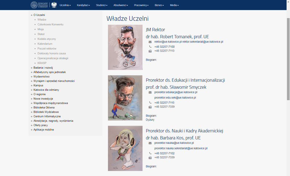 Nowe portrety zamieszczone zostały w sekcji o uczelni -> władze jednak będą widoczne na stronie tylko kilka dni - z okazji Prima Aprilis ;) Następnie ich miejsce zajmą tradycyjne fotografie.