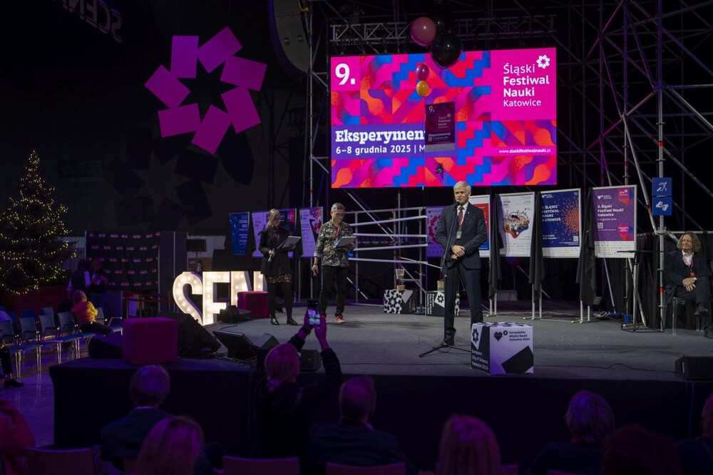 Uroczyste otwarcie 9. Śląskiego Festiwalu Nauki, z udziałem władz uczelni wyższych zrzeszonych w Konsorcjum Akademickim "Katowice - Miasto Nauki" oraz przedstawicieli Ministerstwa Nauki i Szkolnictwa Wyższego, Ministerstwa Funduszy i Polityki Regionalnej, Miasta Katowice, Urzędu Marszałkowskiego Województwa Śląskiego i Górnośląsko-Zagłębiowskiej Metropolii, odbyło się 6 grudnia 2025 r. Uniwersytet Ekonomiczny w Katowicach reprezentowali JM Rektor prof. dr hab. inż. Celina M. Olszak oraz Prorektor ds. Nauki i Rozwoju Kadry Akademickiej prof. dr hab. Maciej Nowak.