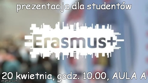 Biuro Międzynarodowej Wymiany Studentów zaprasza wszystkich studentów na prezentację stypendiów zagranicznych programu ERASMUS+, w poniedziałek, 20 kwietnia br. o godz. 10.00 w Auli A.