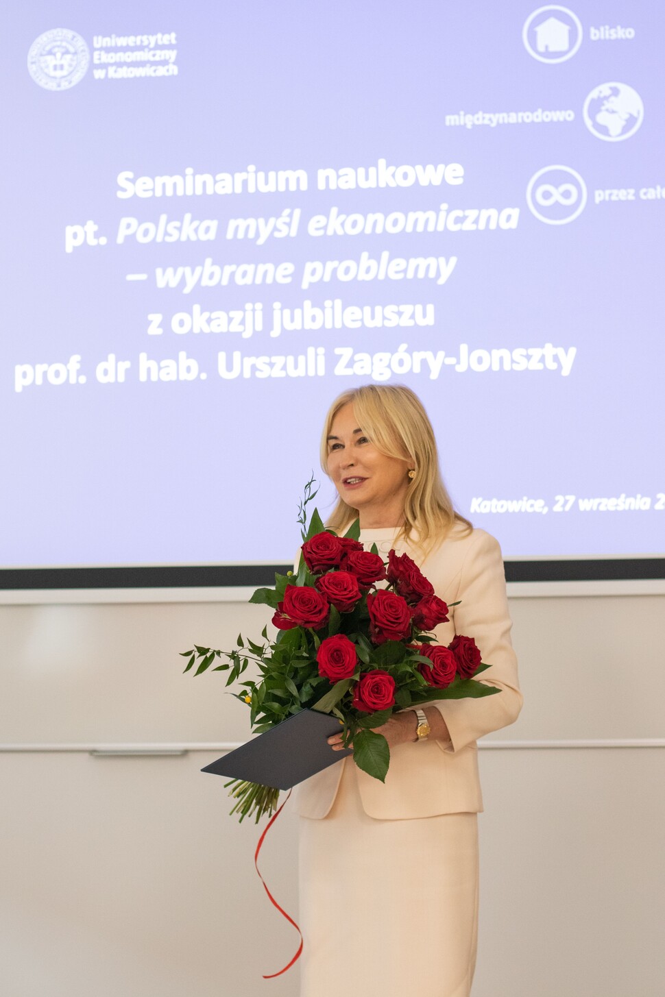 27 września 2021 r. z odbyło się seminarium naukowe pt. "Polska myśl ekonomiczna – wybrane problemy" poświęcone uhonorowaniu pracy naukowo-badawczej prof. dr hab. Urszuli Zagóry-Jonszty. Wydarzenie zostało zorganizowane przez Katedrę Ekonomii Uniwersytetu Ekonomicznego w Katowicach w Auli im. Zbigniewa Pawłowskiego. Z ramienia władz Uczelni w wydarzeniu wzięli udział JM Rektor prof. dr hab. Celina M. Olszak oraz Prorektor ds. Edukacji i Współpracy Międzynarodowej prof. dr hab. Sławomir Smyczek.