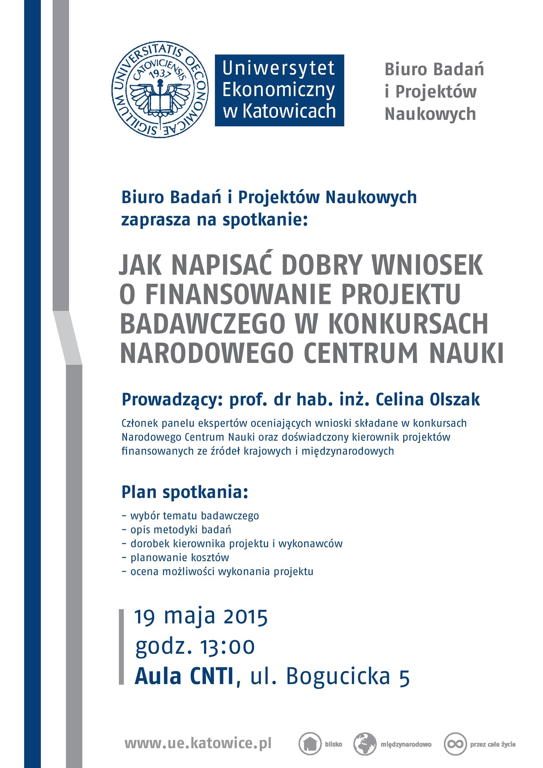 Prezentację poprowadzi prof. dr hab. inż. Celina Olszak - członek panelu ekspertów oceniających wnioski składane w konkursach Narodowego Centrum Nauki oraz doświadczony kierownik projektów finansowanych ze źródeł krajowych i międzynarodowych.