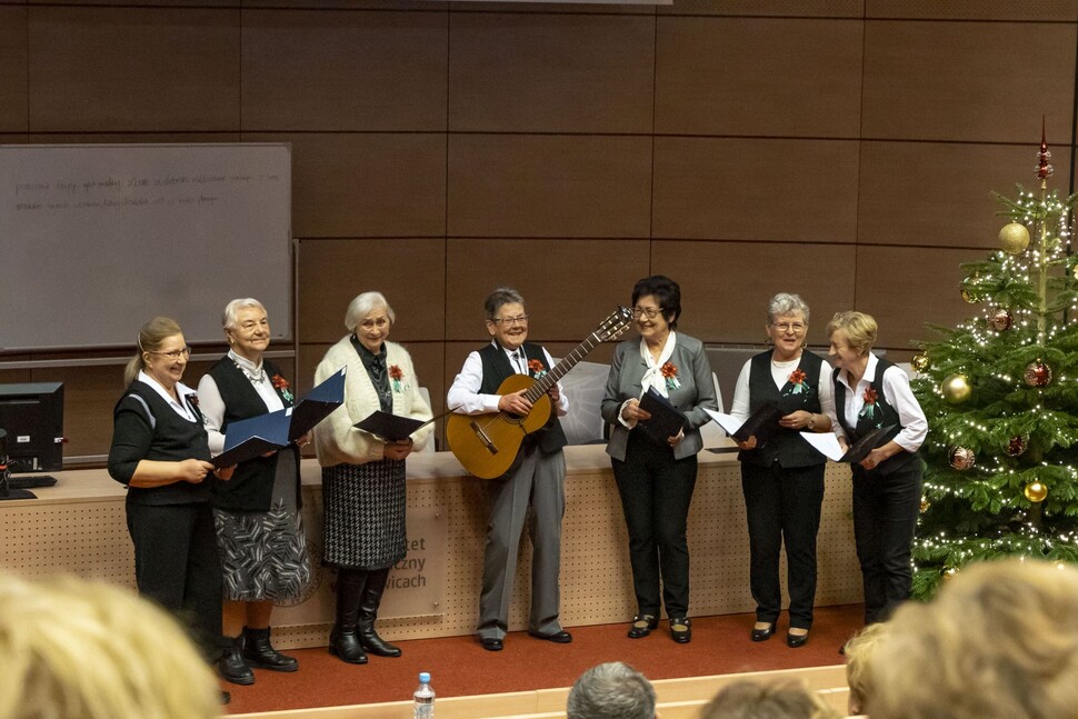 15 grudnia 2022 r. ponad osiemdziesięciu słuchaczy Uniwersytetu Ekonomicznego Trzeciego Wieku wzięło udział w świątecznym spotkaniu w Auli CNTI.