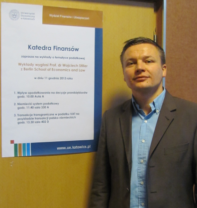 W dniu 11 grudnia 2013 r. gość Katedry Finansów prof. dr Wojciech Stiller z Berlin School of Economics and Law wygłosił trzy wykłady o tematyce podatkowej:
