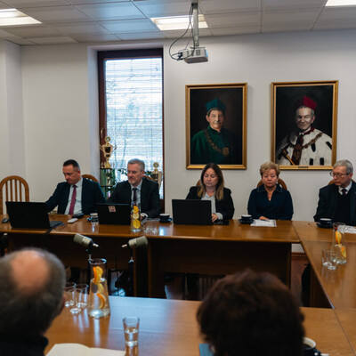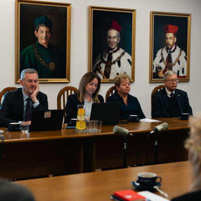 Przed rozpoczęciem obrad Przewodnicząca RKRUA JM Rektor prof. dr hab. inż. Celina Olszak uroczyście powitała członków Stowarzyszenia oraz zaproszonych Gości. Głównym punktem obrad była prelekcja pt. "Reagowanie na zdarzenia nadzwyczajne na Uczelniach". Dyrektor Instytutu Bezpieczeństwa Akademii Humanitas dr Tomasz Miłkowski przedstawił procedury postępowania w sytuacjach kryzysowych oraz omówił kwestie związane z budowaniem systemów bezpieczeństwa na poziomie uczelni. W ramach spraw bieżących poruszono między innymi kwestie planowanych działań Regionalnej Konferencji Rektorów Uczelni Akademickich w roku 2026, możliwości organizacji wspólnych inicjatyw naukowych, dydaktycznych i organizacyjnych.