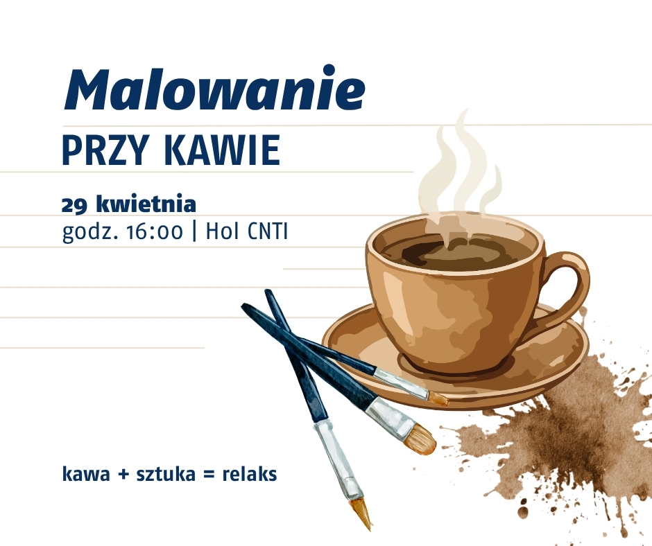 Serdecznie zapraszamy studentów i pracowników naszej Uczelni na wyjątkowe warsztaty artystyczne "Malowanie przy kawie", które odbędą się już 29 kwietnia o godz. 16:00 w holu CNTI.