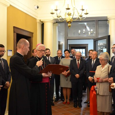 Wstęgę symbolicznie przecięli rektor wraz z prezydentem Miasta Katowice, dr. Marcinem Krupą oraz skarbnikiem województwa śląskiego, dr Elżbietą Stolorz-Krzisz. Następnie budynek, pracowników i przybyłych gości pobłogosławił arcybiskup metropolita katowicki dr Wiktor Skworc.