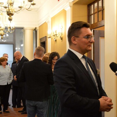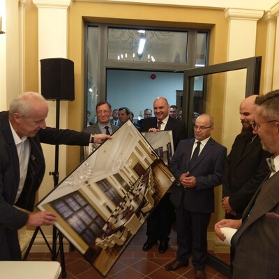 Pod koniec uroczystości Andrzej Konior – prezes Zarządu KONIOR Przedsiębiorstwa Budowlanego Sp. z o.o (wykonawca modernizacji), dziękując za zaufanie i współpracę, przekazał symbolicznie władzom uczelni fotografie zmodernizowanego obiektu.