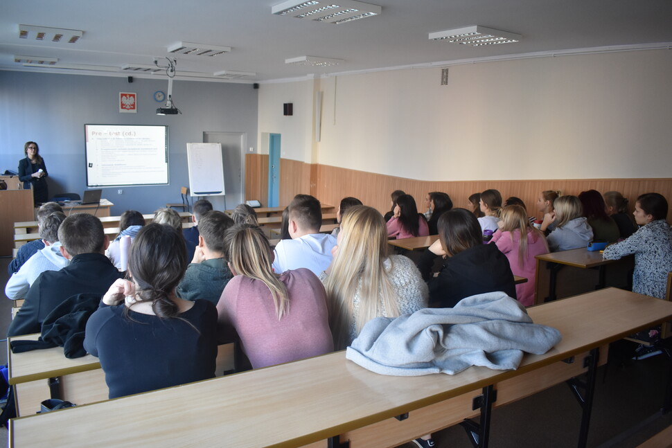 W dniu 30.11.2018 roku w Zespole Szkół Ekonomicznych w Wodzisławiu Śląskim odbyło się spotkanie dr Katarzyny Olejko – pracownika Wydziału Biznesu, Finansów i Administracji Uniwersytetu Ekonomicznego w Katowicach - z uczniami klas maturalnych. Poprowadzone przez nią zajęcia warsztatowe, połączone z wykładem pt. Wykorzystanie rachunku przepływów pieniężnych w ocenie kondycji przedsiębiorstwa, odbyły się w ramach realizacji umowy patronackiej podpisanej przez szkołę z Uniwersytetem Ekonomicznym w Katowicach. Uczniowie klas 4 technikum ekonomicznego mogli od strony praktycznej poznać zasady przygotowania rachunku przepływów pieniężnych.