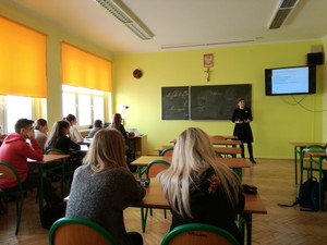 W dniu 15 stycznia 2018 r. w Zespole Szkół Ogólnokształcących im. Karola Miarki w Żorach dr Ewa Wójcik przeprowadziła dwa wykłady w języku angielskim pt. „Financial Institutions - why do we need them?”, które dotyczyły roli instytucji finansowych w naszym życiu. Uczniowie odpowiadali na pytania dotyczące różnych instytucji finansowych i oferowanych przez nie usług. Na podstawie własnych doświadczeń określili obszary i typy ryzyka, z którymi spotykają się na co dzień oraz wskazali sposoby ich minimalizacji i przeciwdziałania. Następnie omówiono znaczenie poszczególnych instytucji finansowych oraz przesłanki ich powstania i rozwoju.