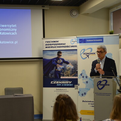 Przedstawiciele środowiska akademickiego, samorządowcy, pracodawcy, doradcy zawodowi i uczniowie 14 kwietnia br. wzięli udział w Dniu Akademickim zorganizowanym w wodzisławskim "Ekonomiku". Uniwersytet Ekonomiczny w Katowicach reprezentowała Filia w Rybniku wraz z Dyrektorem dr. inż. Tomaszem Zielińskim, prof. UE. Był wykład, spotkanie z uczniami, pytania dotyczące studiów...